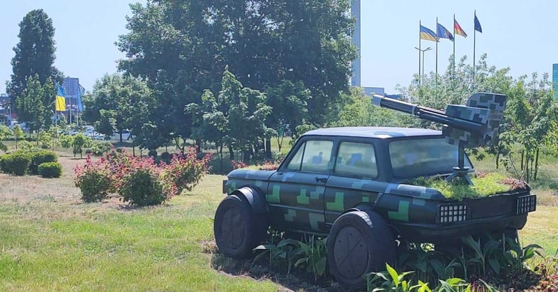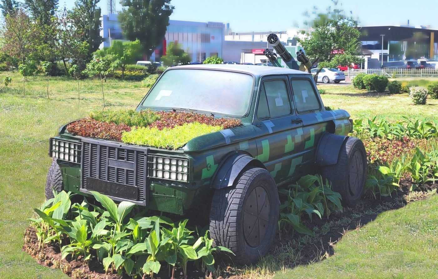 А на капоті бандероавтомобіля висадили пікселем мох.