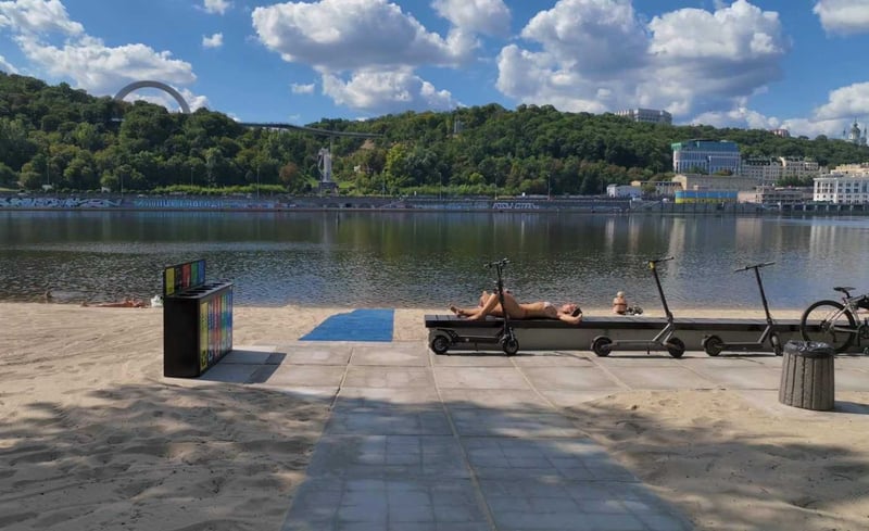 У Києві на пляжі «Центральний», що на Трухановому острові, створили умови для людей з інвалідністю, а також встановили сенсорні питні фонтанчики.