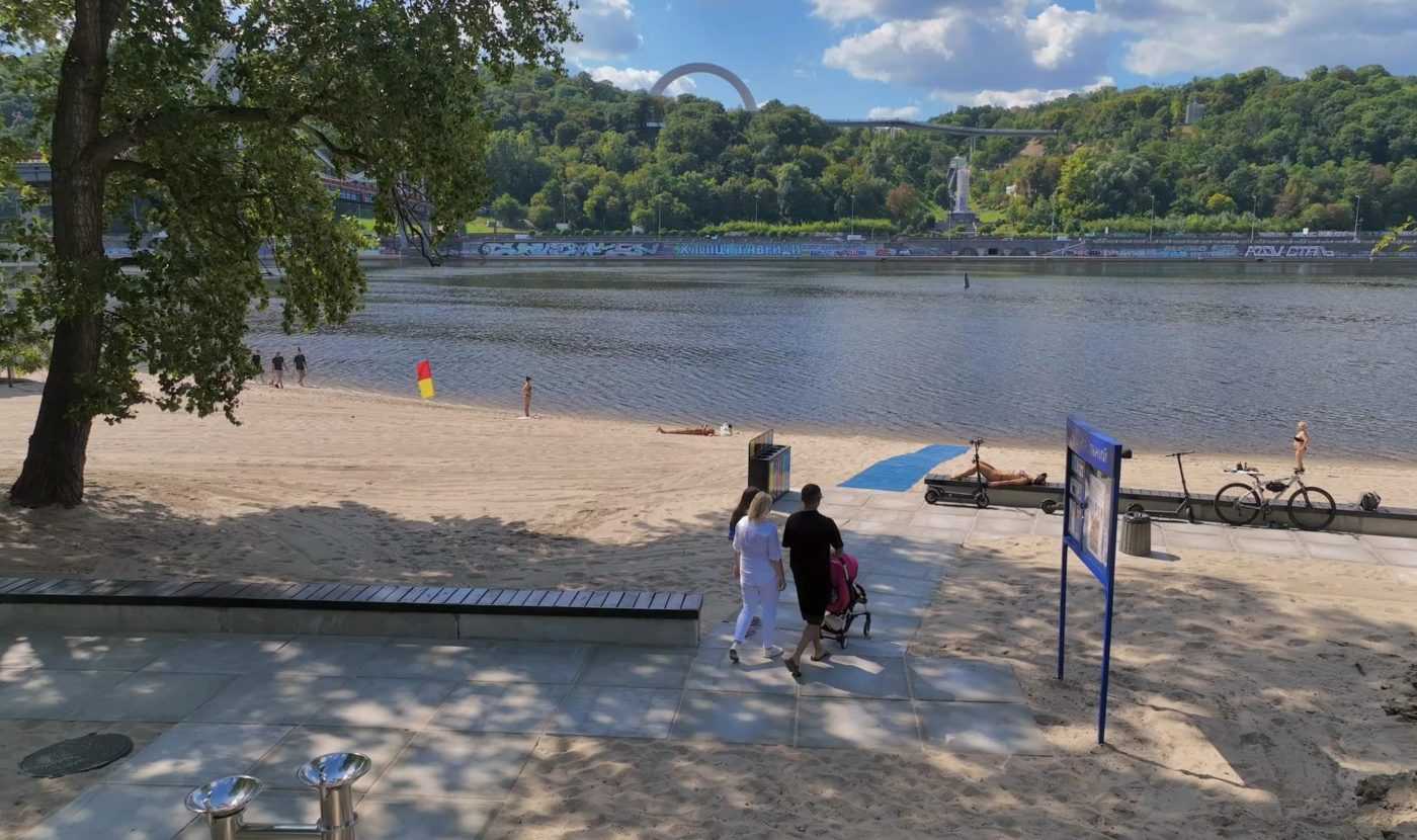 У Києві на пляжі «Центральний», що на Трухановому острові, створили умови для людей з інвалідністю, а також встановили сенсорні питні фонтанчики.