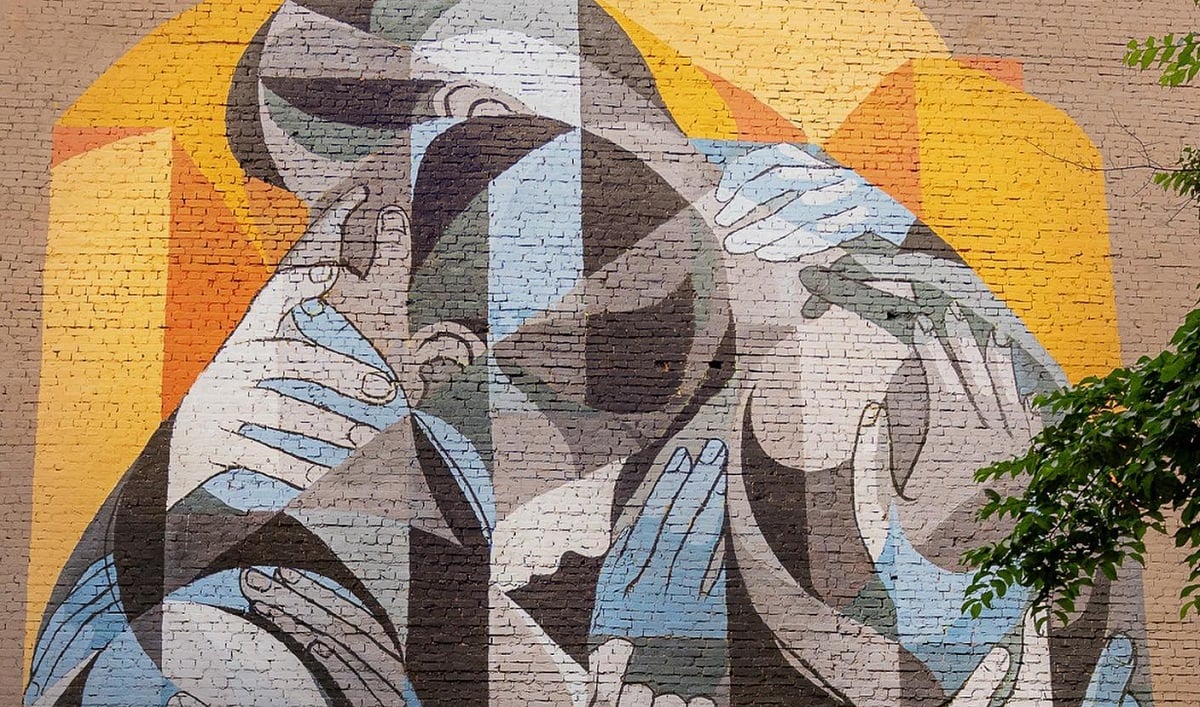 В основі муралу лежить ескіз канадського художника та ілюстратора Еріка Пауза. На ньому зображений малюнок пари, яка застигла в обіймах одне одного, але їх обіймають ще безліч рук.