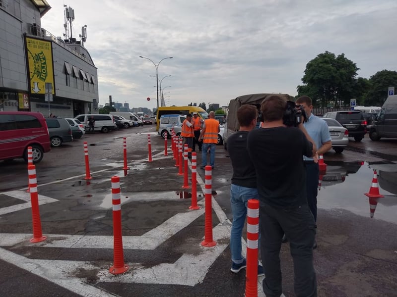 Зазначимо, спеціалісти КП «Центр організації дорожнього руху» встановили дорожні віхи на низці локацій у місті з метою унеможливлення паркування. Зокрема, на площах Бессарабській, Перемоги, Льва Толстого, Поштовій було відокремлено напрямні острівці, на вулицях Покровській та Хорива – для забезпечення руху транспорту по двом смугам, а біля різноманітних установ – Генеральної прокуратури, Національного експоцентру, палацу «Україна» та інших – для забезпечення безперешкодного роз’їзду зустрічного транспорту.