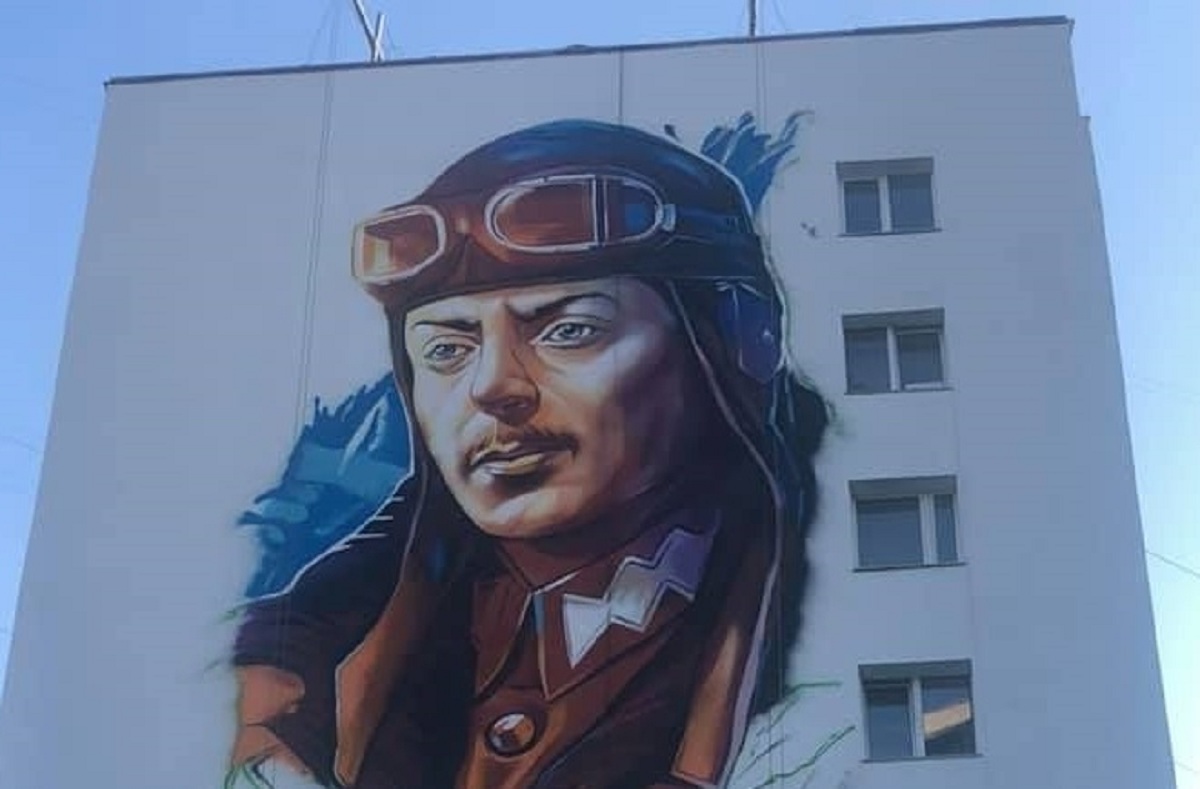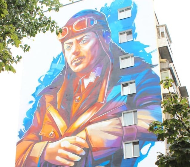 Символічно місцем для муралу стала вул. Авіаконструктора Антонова, буд. 7. Автор муралу художник Андрій Пальваль.
