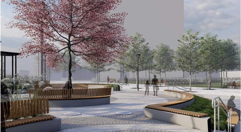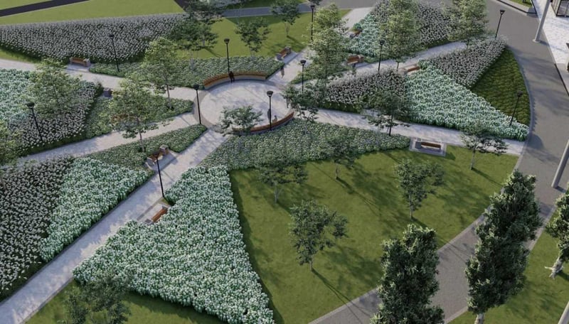 «Передбачене створення зеленої зони, висадження дерев, встановлення відеоспостереження, автоматичного поливу, пандусів для маломобільних мешканців, підсвітки дерев та освітлення території», — йдеться в описі концепції.