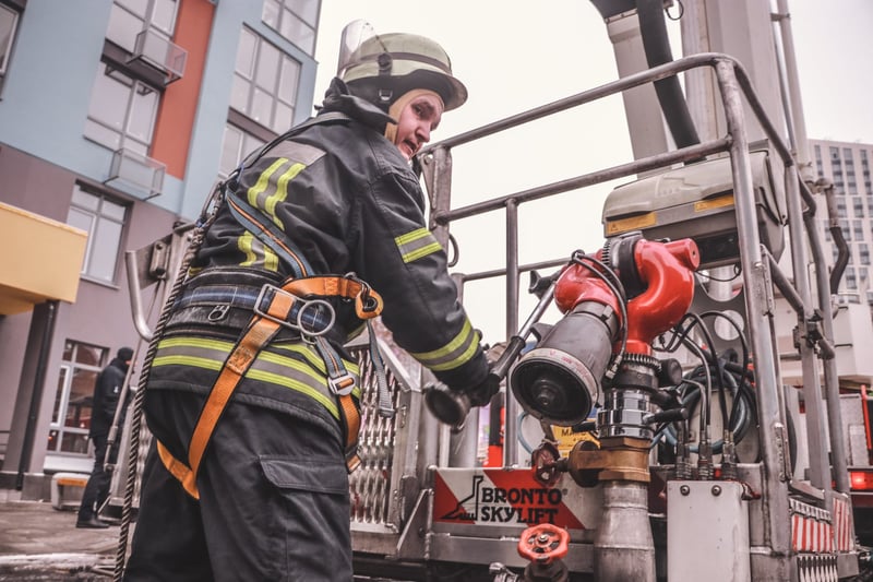 Щоб забезпечити достатній тиск для гасіння пожежі на даху будівлі, рятувальники встановили мотопомпи, по одній на кожні 10 поверхів та проклали магістральну лінію по сходовим клітинам.