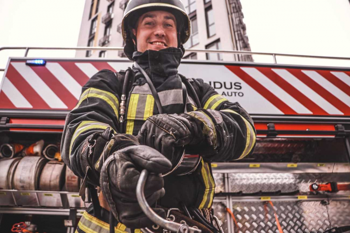 За тактичним задумом навчань, на даху 25-ти поверхового будинку виникла умовна пожежа.