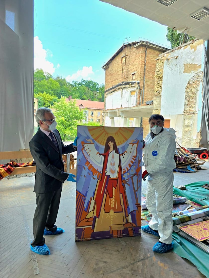 Заступник Міністра культури та стратегічних комунікацій Сергій Бєляєв разом із фахівцями Національного науково-дослідного реставраційного центру України обстежили стан творів.