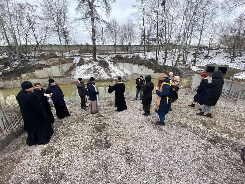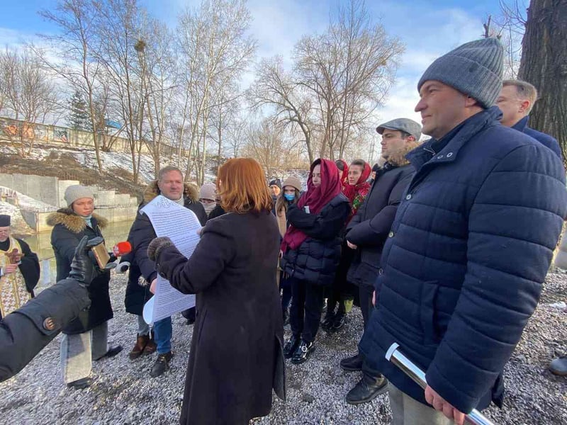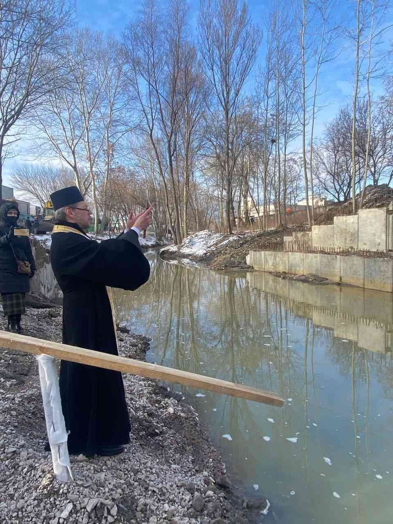 19 січня у Києві біля річки Почайна, де стартували роботи із ревіталізації ріки та створення парку «Почайна», освятили воду та майбутню споруду «Хрещальна купель».