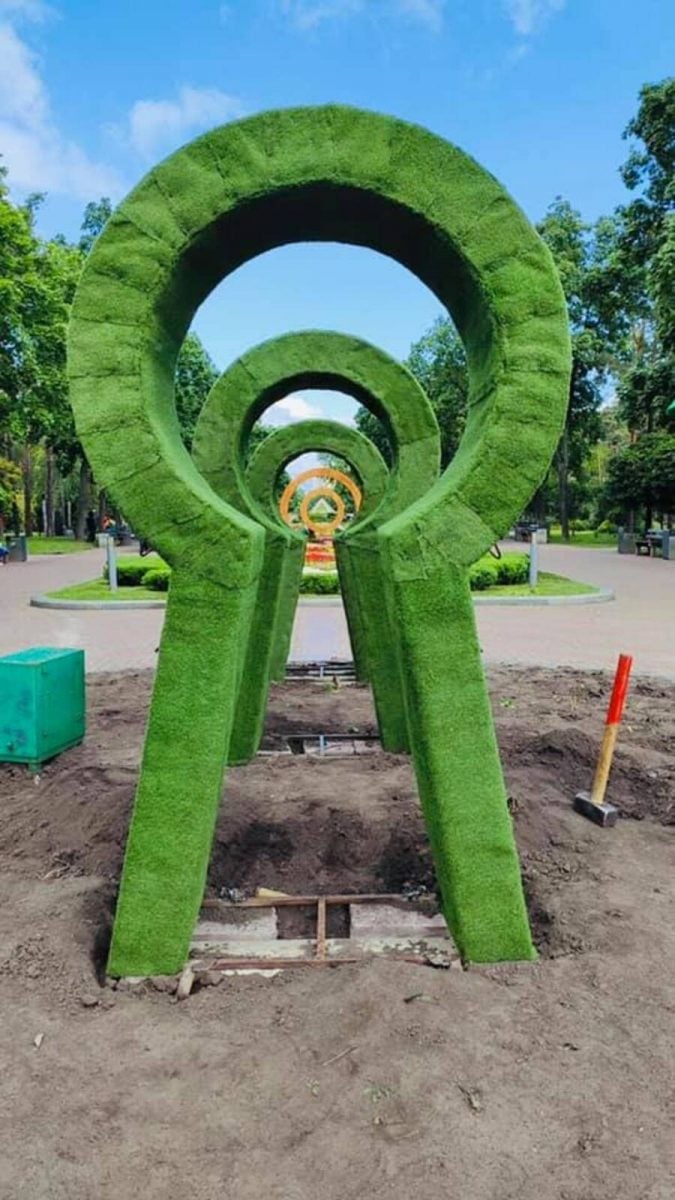 У Києві до Дня міста готують зелені зони, зокрема, до вже висаджених «казкових» квітників у Парку культури та відпочинку «Перемога» встановлюють незвичні вертикальні конструкції та арт-об’єкти.