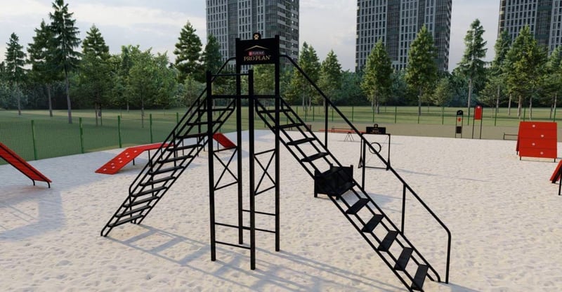 Площа майданчика — 150 м², він розташований біля майданчика для петанку на вулиці Бетховена. Простір поділили на секції для тренувань і вигулу, також встановили тамбурні входи та зоокомплекси для прибирання.