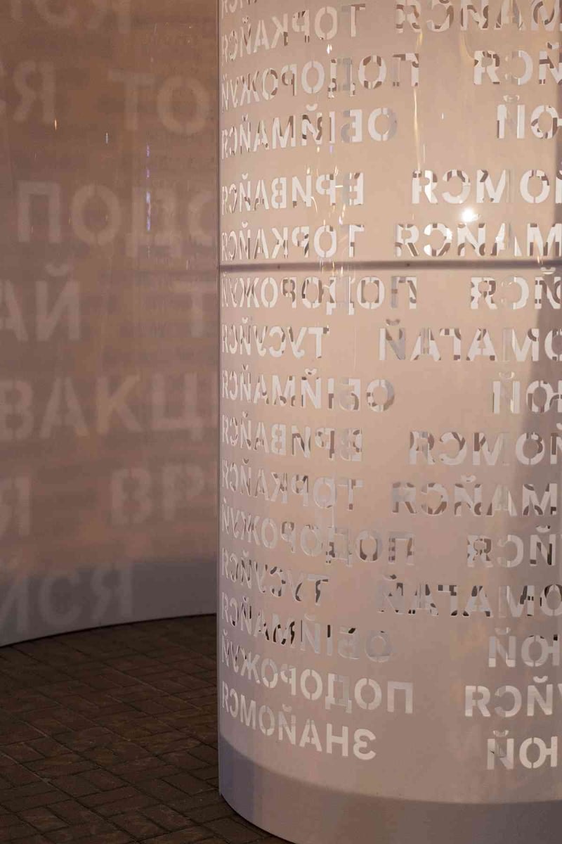 Це циліндрична равликоподібна конструкція з прорізаними в ній написами «обіймайся», «подорожуй», «живи», «торкайся», «цілуйся», «вривайся», «знайомся», «втілюй», які віддзеркалюються світловими відбитками на підлозі.