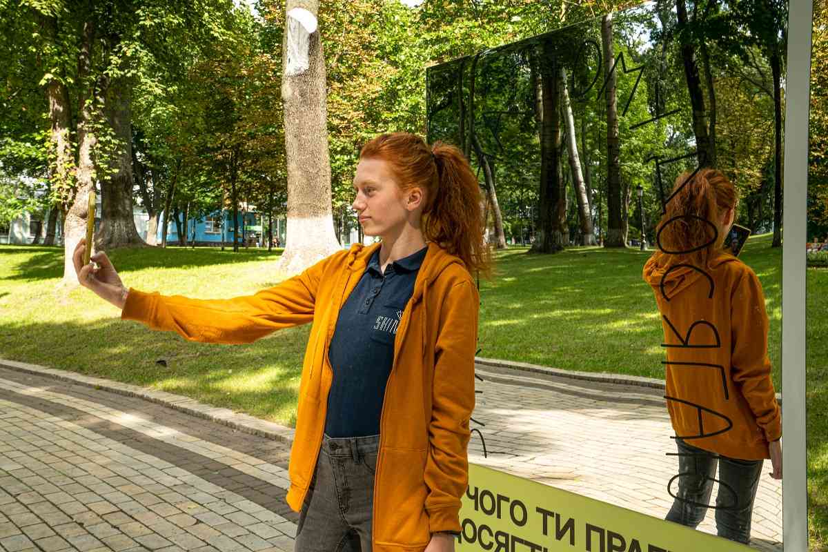 Зазначається, що інсталяція «Проєкція можливостей» розміщена біля міської ради на вул. Хрещатик, 36.