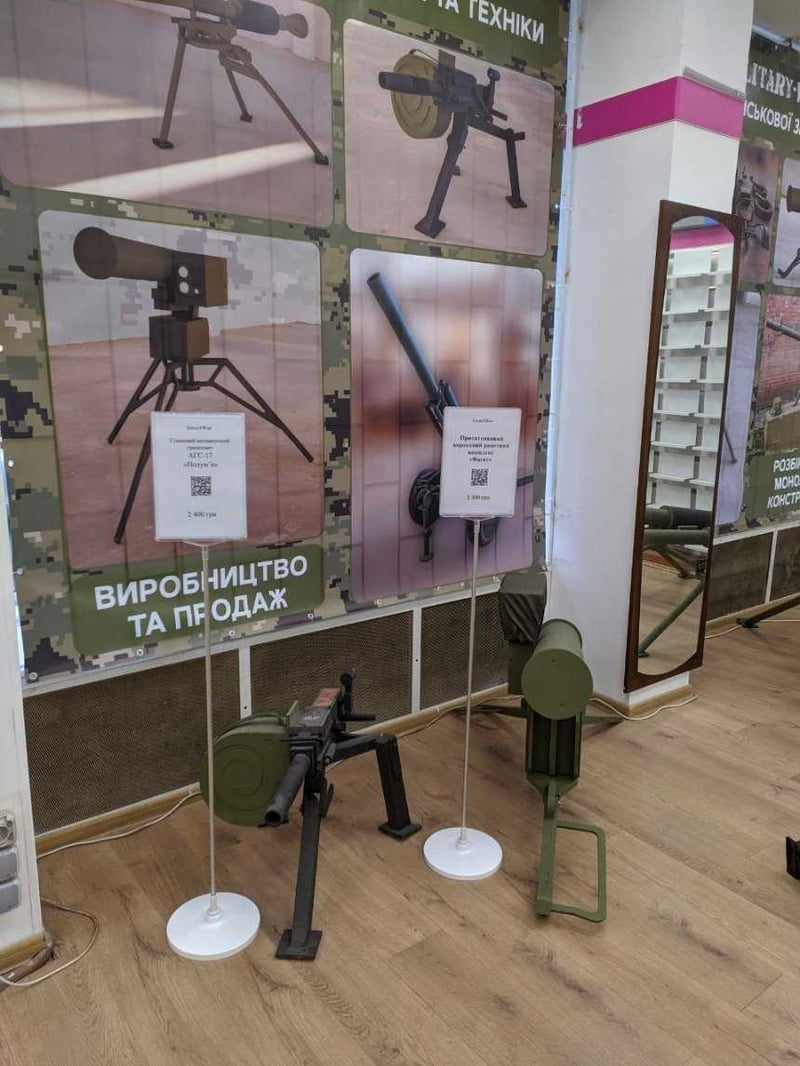 Зазначається, що це перший подібний магазин в Україні. Окрім безпілотників, там доступні макети озброєння та військової техніки, а також симулятори стрілянини з Javelin та NLAW. Усе це можна придбати для військових на фронт.
