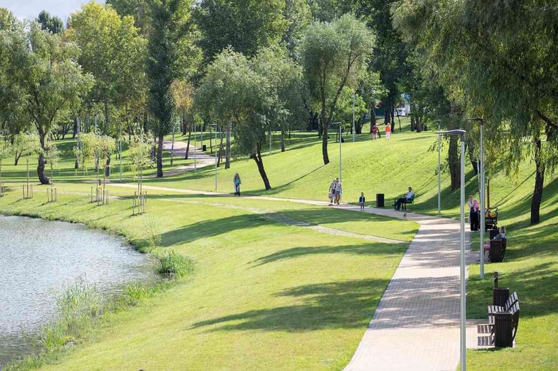 Також біля третьої водойми встановили оглядовий майданчик та вимостки для рибалок, висадили дерева та кущі, посіяли майже 4 гектари газону. Влаштували поливо-зрошувальну систему, встановили відеоспостереження.
