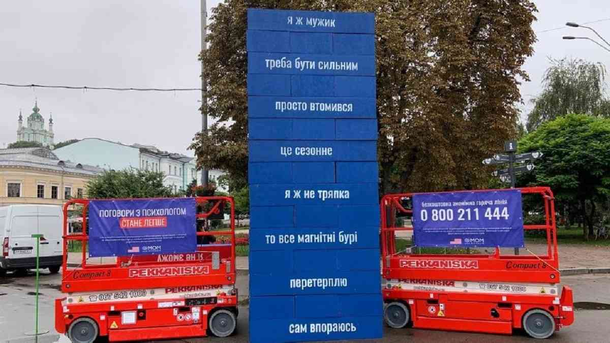 У Києві на Контрактовій площі встановили інсталяцію, яка має привернути увагу до психічного здоров’я чоловіків.