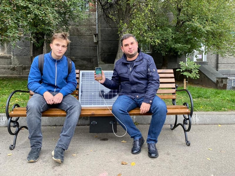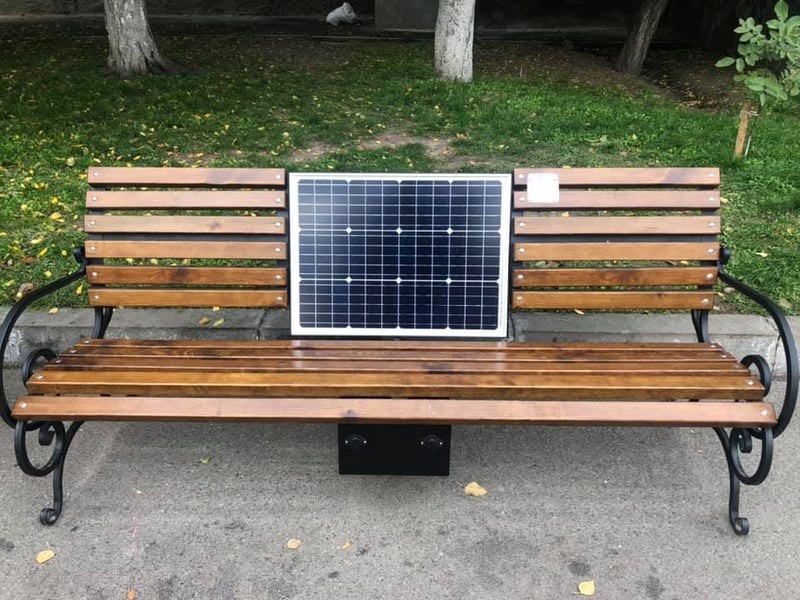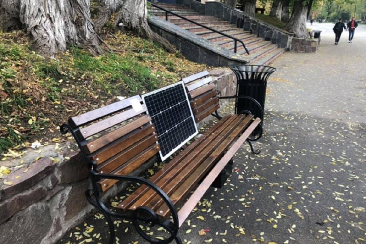У Києві на вулиці Політехнічній встановили 20 нових урн та 20 нових лав, з них 5 мають сонячні батареї, тож можна зарядити свої гаджети.