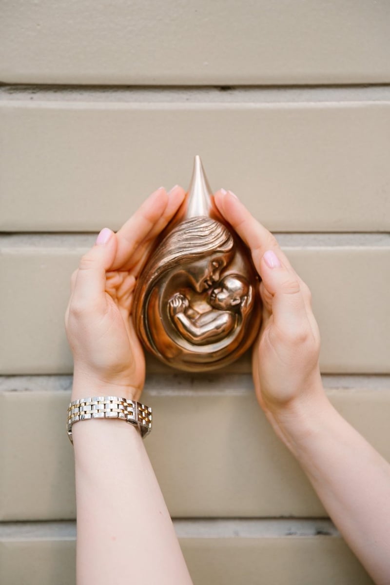 Нову скульптуру встановили під табло перинатального центру на вулиці Предславинська, 9, яке показує кількість немовлят, що народилися за добу. Автор скульптури — Юрій Белявський, а меценаткою проєкту стала Юлія Монастирюк.