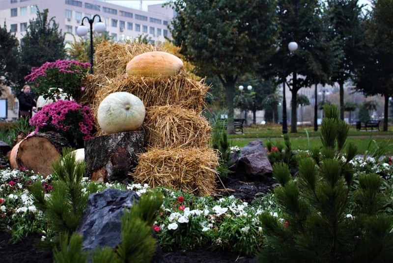 Нещодавно солом‘яно-гарбузова композиція від працівників КП УЗН Солом‘янського району з’явилася в сквері на Повітрофлотському проспекті.