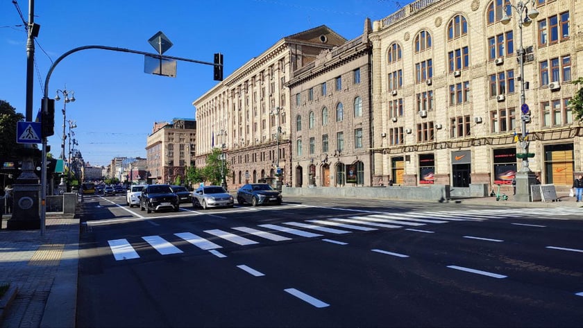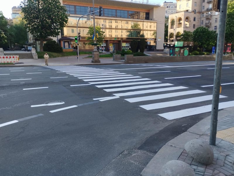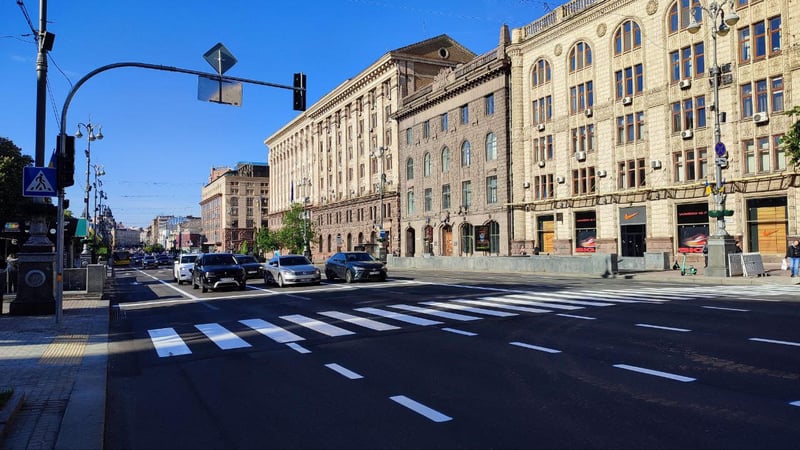 У Києві завершили облаштування безбар’єрного регульованого пішохідного переходу, який дублює підземний перехід через вулицю Хрещатик. Новий наземний перехід розташований праворуч від вулиці Прорізної, біля входу до станції метро «Хрещатик».