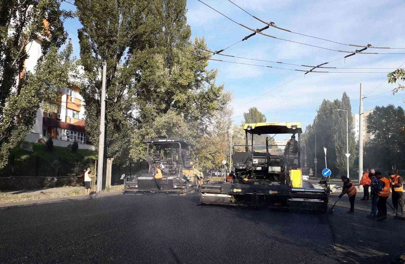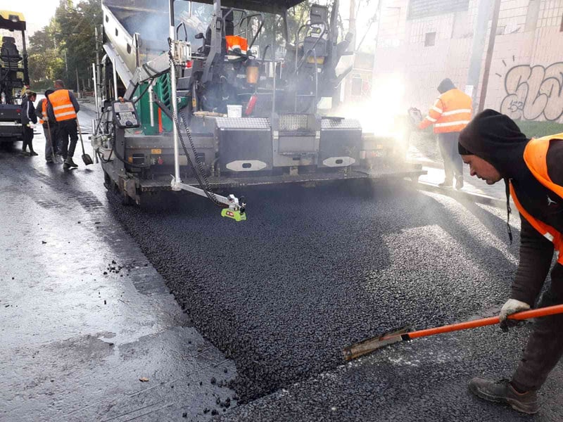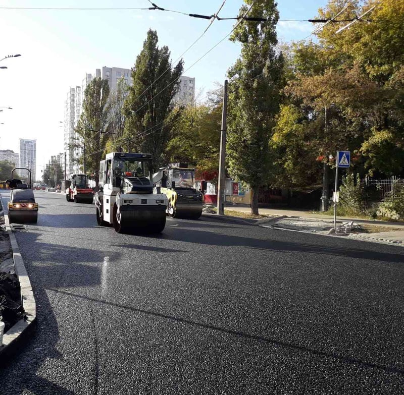 Дорожники вже закінчили влаштовувати верхній шар покриття на всій вулиці. Влаштовано близько 35 тис. кв. м асфальтобетону.