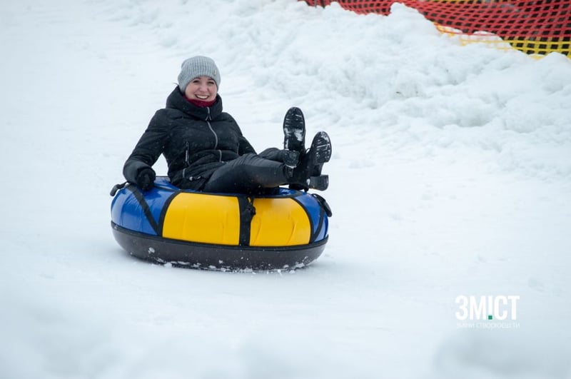 У Києві в парку «Перемога» запрацювала тюбінг-гірка площею 300 кв. м із 400 кубами снігу та двома доріжками, на яких можна кататися дорослим і дітям від 5 років.