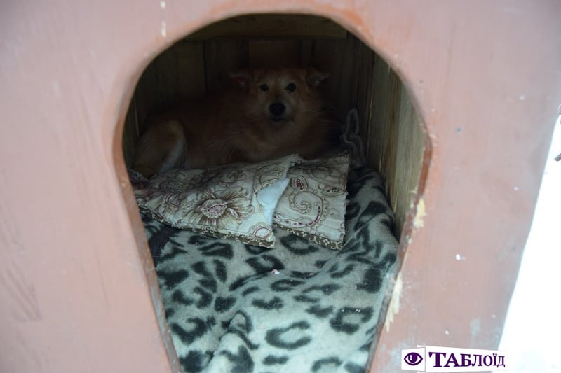 Зазначається, що небайдужі встановили саморобні собачі будки. Також є одноразові тарілки, всередині будки облаштовані ковдрами.