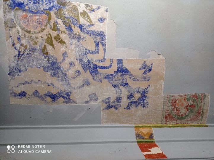 Дослідження в будинку триватимуть до кінця тижня. На стінах – декілька розписів різних часів, зроблені різними техніками. Нижній шар клеєва техніка, верхній – олійні розписи. Авторство невідоме.