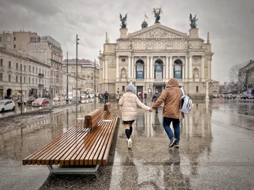 У Львові на площі біля Оперного театру встановили першу з чотирьох 10-метрових лавок.