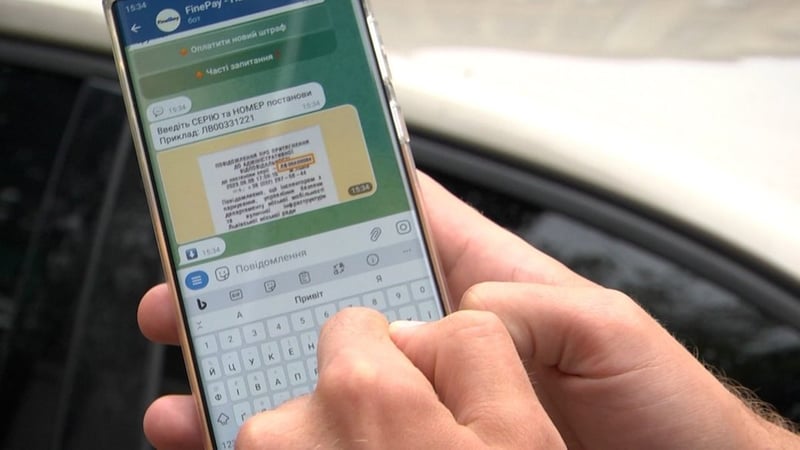 У чат-боті FinePay для користувачів відкривається меню, де можна обрати «часті запитання» або «оплатити новий штраф», далі потрібно ввести серію та номер постанови.