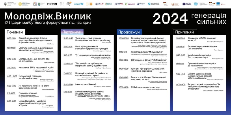 Програма «Молодвіжу» налічує 83 спікери: військові, громадські активісти, політики, журналісти, лідери думок.