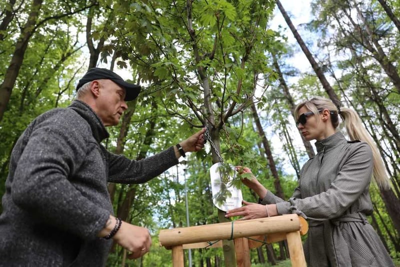 У львівському парку «Залізна Вода», з’явилась Алея пам’яті Героїв. Вісім родин загиблих військовослужбовців зі Львова вирішили в пам’ять про своїх захисників посадити дерева.