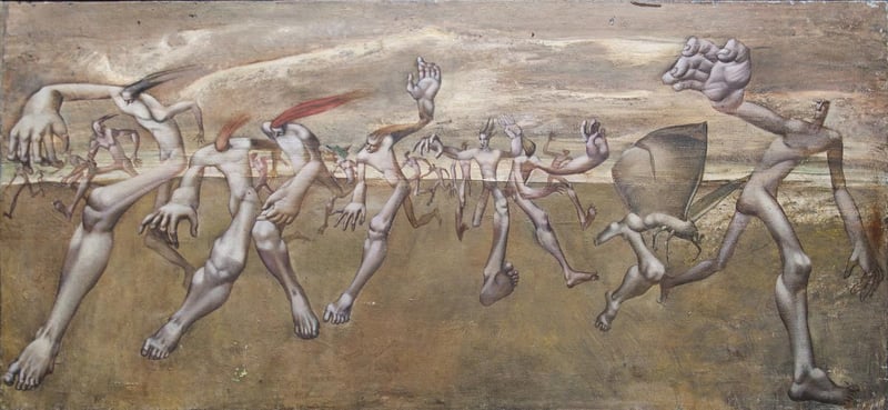 У творах відстежуються впливи європейських течій: дадаїзму, сюрреалізму та нео-експресіонізму.
