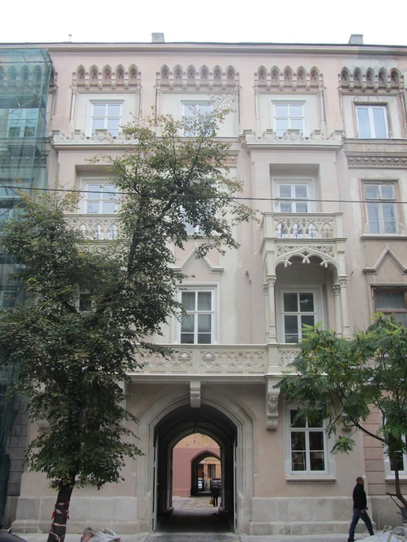 Це перша у Львові чиншова кам’яниця у стилі неоготики, а також найбільший багатоквартирний житловий будинок міста довоєнного часу. У цьому будинку розміщувалися редакції газет, товариств, різноманітні майстерні та бюро. У 1910 році будинок був у власності закладу Оссолінських, в будівлі розташовувались помешкання, адміністрація закладу, а з 1932 року — книгарня.