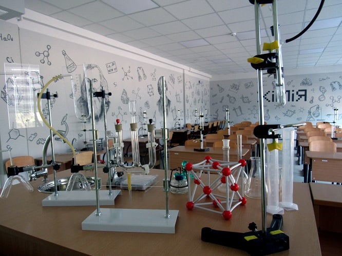 Школа устаткована найсучаснішим обладнанням у предметних кабінетах та облаштована зручними меблями.
