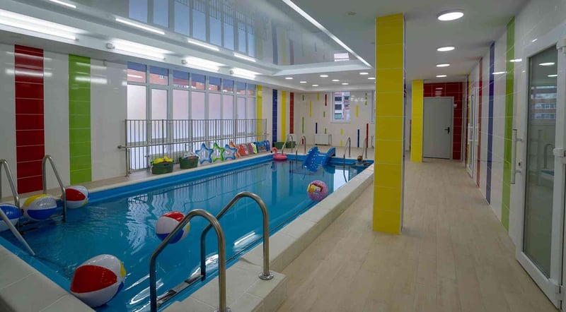 У триповерховій будівлі закладу є басейн, підйомник для дітей з інвалідністю та хороше природне освітлення завдяки будівельній конструкції.