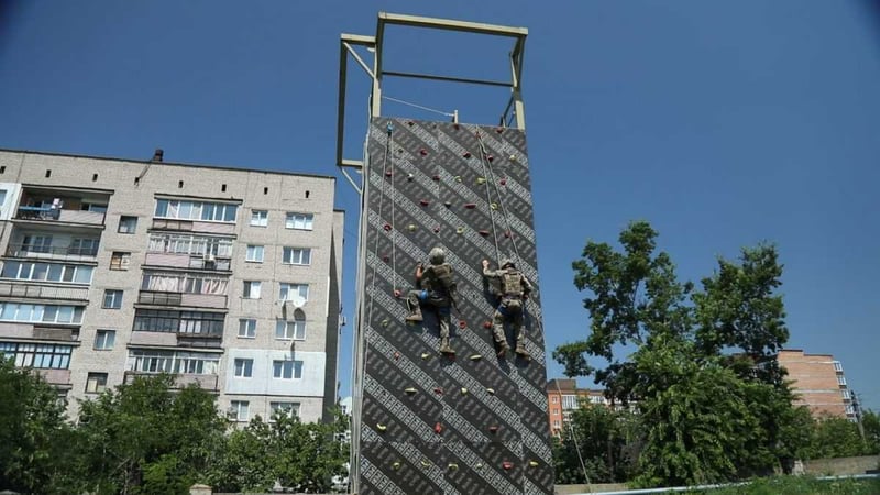 Це і відпрацювали морпіхи на спеціально обладнаному тренажері під керівництвом начальника фізичної підготовки частини, інструктора — альпініста України лейтенанта Михайла Веремієнка.