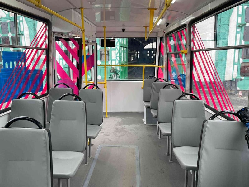 Також у трамваї з’явилися адаптери живлення USB. Відтепер під час поїздки пасажири можуть зарядити свій гаджет. Ззовні транспорт пофарбували у брендовані кольори «Місто на хвилі».