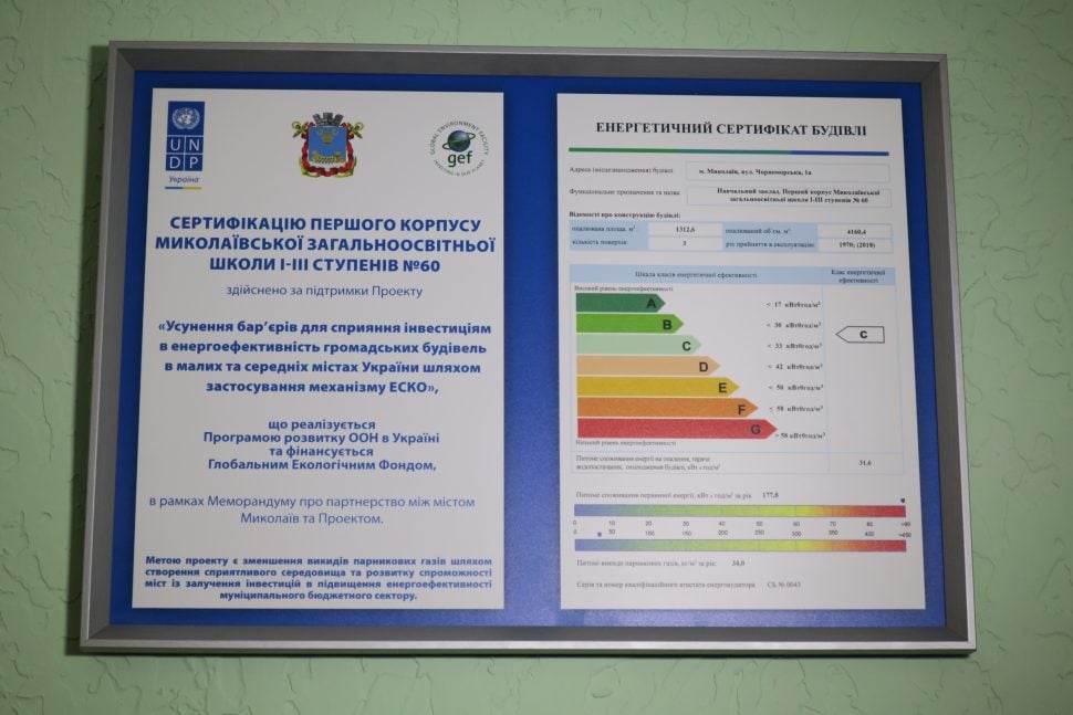 У Миколаєві перша бюджетна установа отримала сертифікат енергоефективності. Комплексну термомодернізацію здійснили для школи №60.