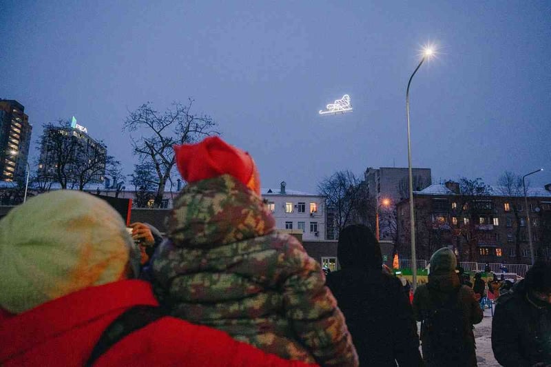 Напередодні зимових свят у небі над вечірнім Києвом помітили новорічні санчата. Казкове видовище створили, щоб подарувати віру в дива кожному.