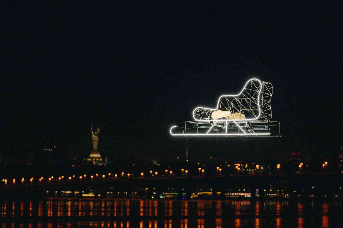 Напередодні зимових свят у небі над вечірнім Києвом помітили новорічні санчата. Казкове видовище створили, щоб подарувати віру в дива кожному.