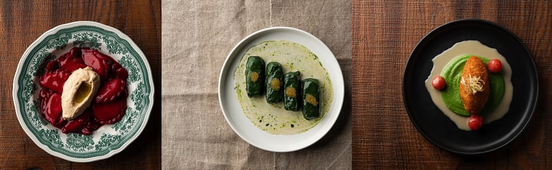 У меню — голубці з креветками, тартар з ферментованою бузиною, борщ з салом, ліниві картопляні вареники з грибами та моцарелою, котлета по-київськи та інші сучасні страви.