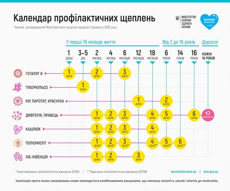 Отримувати безкоштовні вакцини клініки заклади будуть згідно з Календарем щеплень.