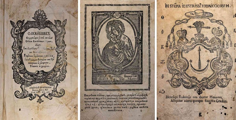 «Це “Служебник”, виданий у 1734 році. Частина тиражу з титульним аркушем 1735 року мала наклад понад 1000 примірників. На титулі – зображення Почаївської чудотворної ікони Богородиці, датоване 1733 роком – за рік до виходу Служебника», – розповіла Морощова.