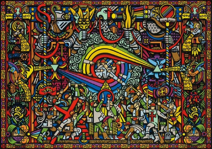 Художник провів кураторську екскурсію виставкою, яка у віртуальному просторі моделює ситуацію, наближену до простору традиційної галереї, і розповів про історію створення робіт та їхній символізм.