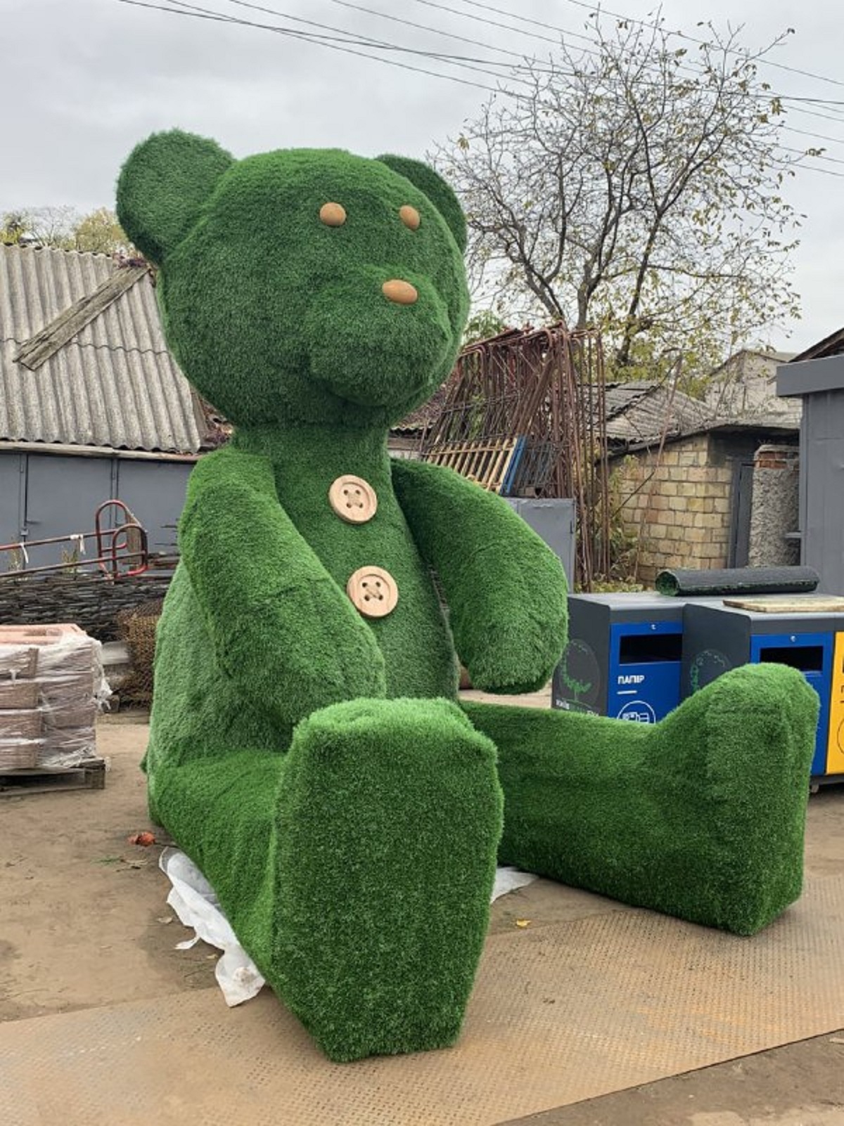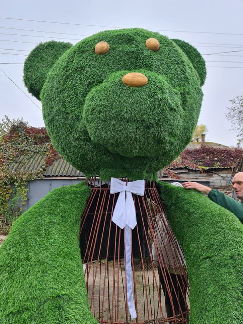 “Ми посилили конструкцію цього арт-об’єкту. Зробили його ще більше схожим на ведмедя. Лапи, наприклад, зробили більш стійкими і клишоногість. Пузо ведмедя стало більше, він тепер не худенька, як його називали критики. Також повністю оновили матеріал, яким покритий ведмідь. Він став пухнастим, оскільки покритий трисантиметровим зеленим ворсом”, – додає Євген Ковшун.