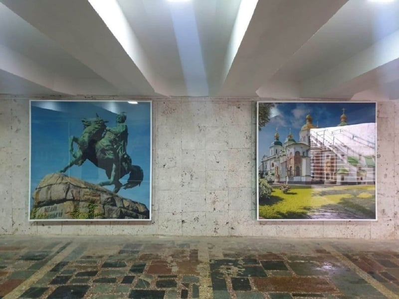 На стінах переходу з’явилися зображення символів Києва – пам’ятника Богдану Хмельницькому та Софійського собору.
