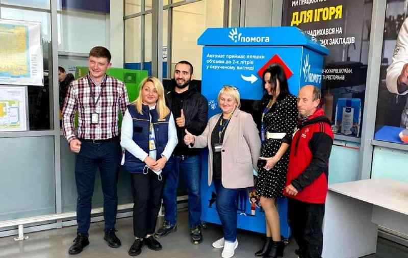 У Києві відкрили десятий «Япомогабокс», який перетворює пластикові пляшки на допомогу безпритульним тваринам, дітям та людям похилого віку, а також українським військовим.