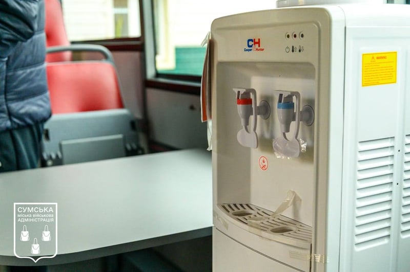 Для проєкту використали два автобуси, які партнери надіслали в Суми як гуманітарну допомогу. Транспорт обладнали джерелами живлення, чайниками, мікрохвильовками, запасом питної води та медикаментами.