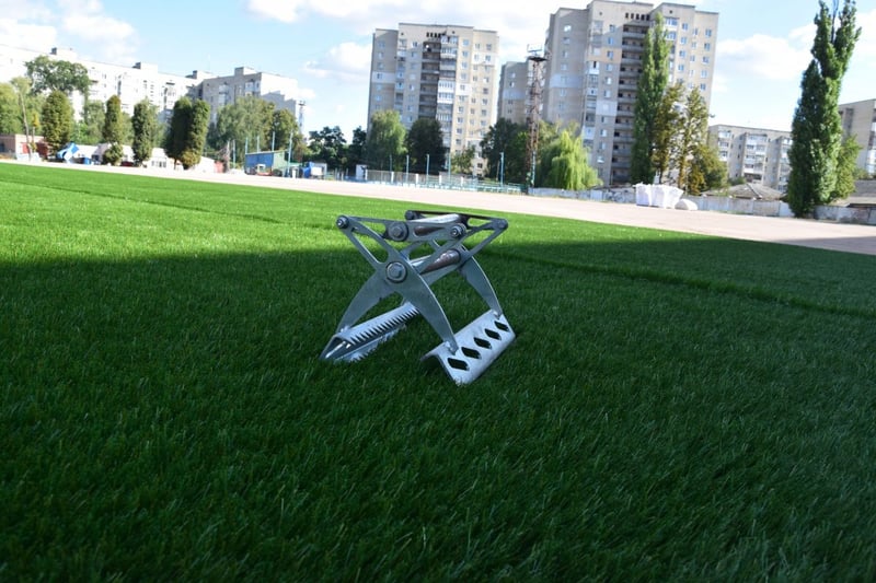 Як розповів начальник управління капітального будівництва та дорожнього господарства Віталій Шилов, це покриття останнього, третього покоління, довжина ворсу 5 см, сертифікат якості Франція – Сербія.