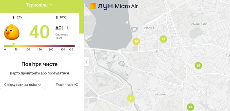 «Моніторинг якості повітря ЛУН Місто AIR тепер працює в Тернополі! Дякуємо за підтримку Тернопільскій міській раді та міському голові Сергію Надалу», – зазначили в ЛУН.