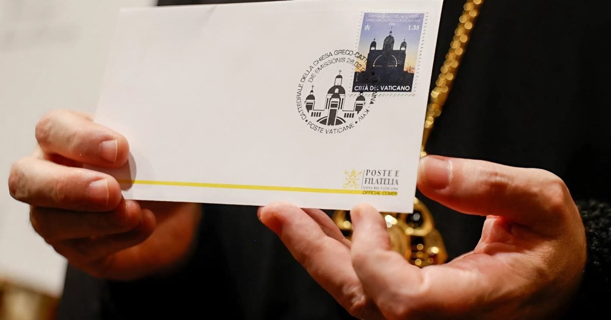 У Ватикані представили поштову марку на честь українських католиків. На ній — київський собор Воскресіння Христового під час відключень світла.